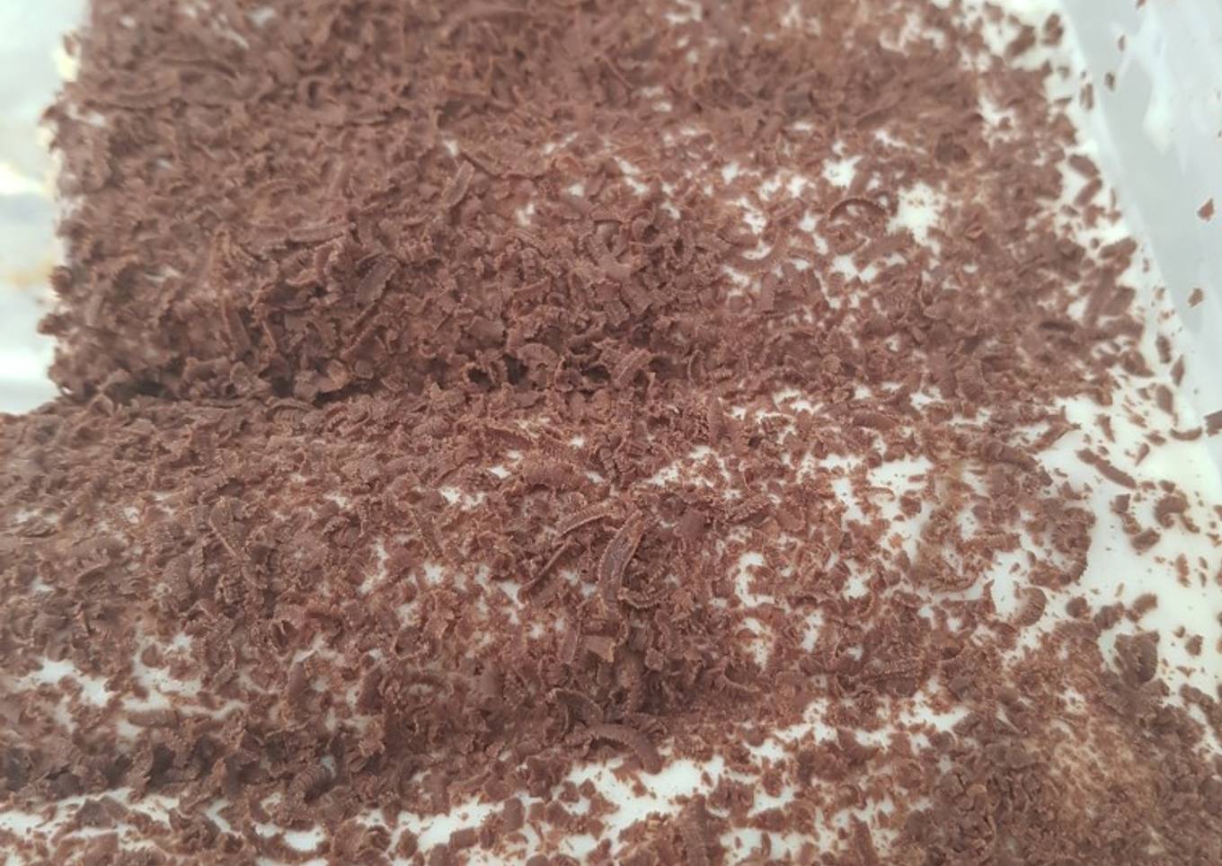 - Terminamos la última capa de crema y rallamos chocolate para taza y se lo esparcimos por arriba.