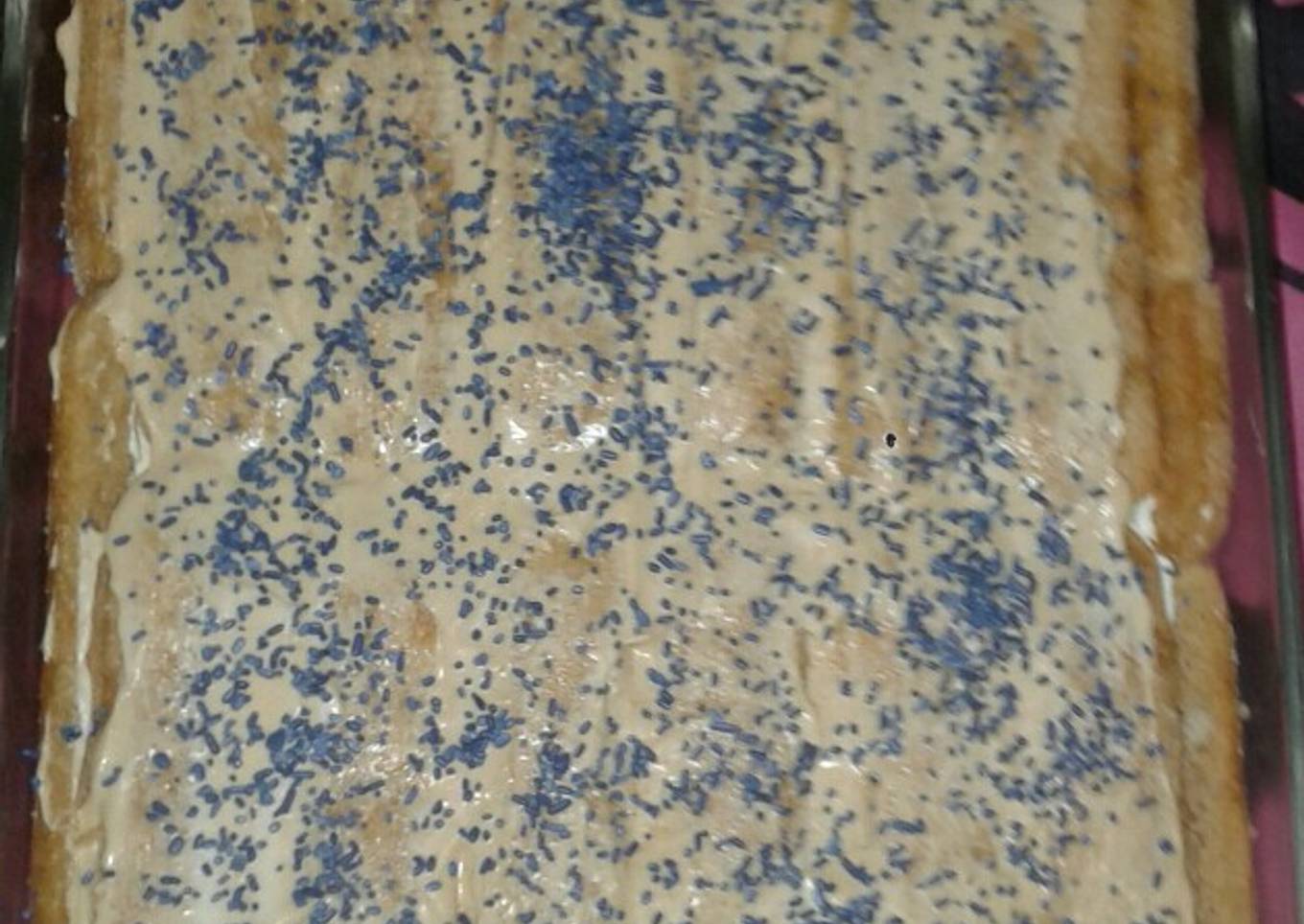 - Poner la crema sobre la base de vainillas y volver a repetir la capa de vainilla mojada con café