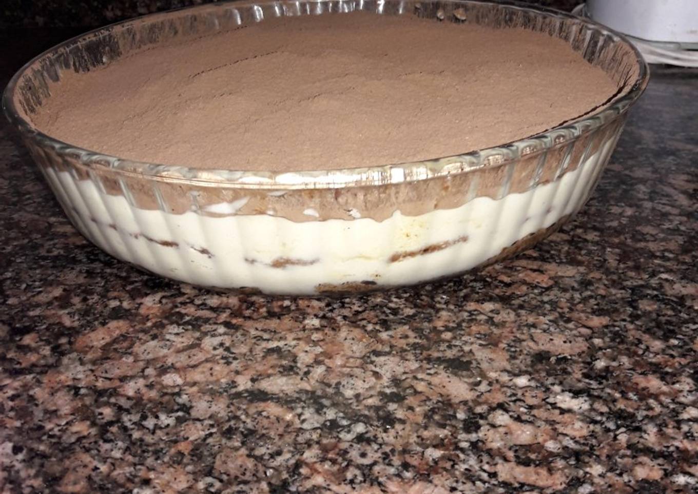 - Espolvorear el cacao amargo y listo el tiramisú #Riquísimo... dejar enfriar, mientras más frío este es súper delicioso❤😊