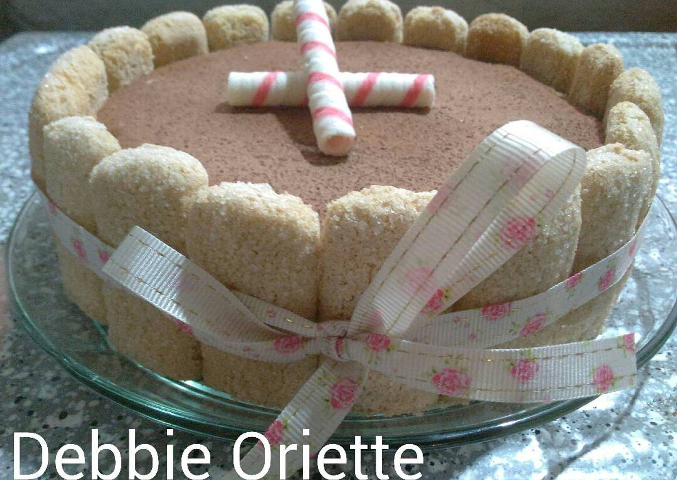- En un molde número 18 o aro número 18 o 20 bien en filmado ponemos en la base vainillas remojadas en almíbar el cual haremos de la siguiente forma: hervimos por 10 min el azúcar y el agua una vez retirado del fuego le agregamos el café instantáneo y el café al coñac dejamos enfriar y remojamos las galletas