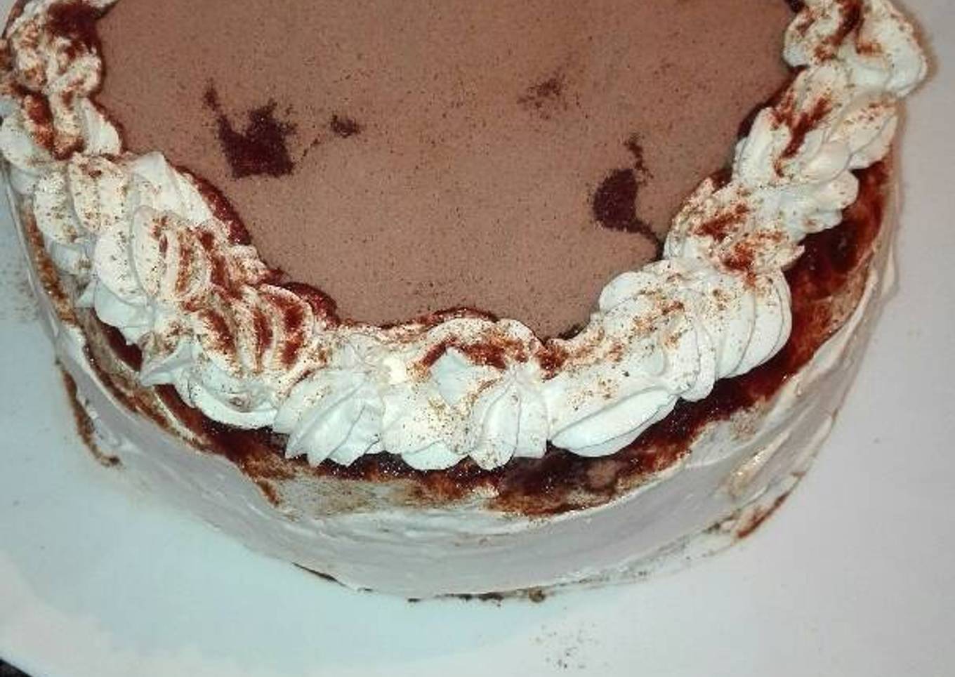 - Terminando con una capa de bizcocho. Cerrar bien y dejar en el frío unas horas. Desmoldar y cubrir con crema de queso y cacao. Adornar al gusto