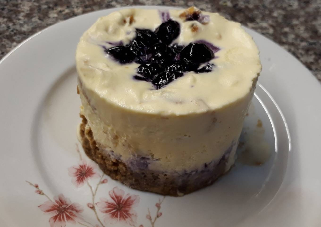- En mi caso utilicé moldecitos que se pueden desmoldar. Se puede hacer en copas o en moldes individuales que tengan. En un molde grande tener en cuenta que las cantidades de ingredientes son como para 4 raciones. Se puede acompañar con más salsa de arándanos.