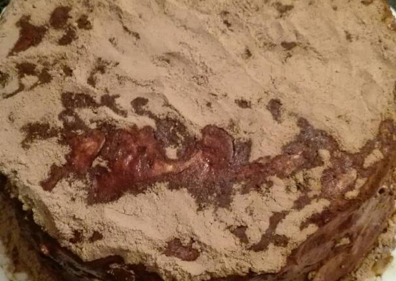 - Cerramos con el film y metemos en el frío. Pasadas unas horas lo desmoldamos y cubrimos con la crema de queso espolvoreamos con cacao amargo.
