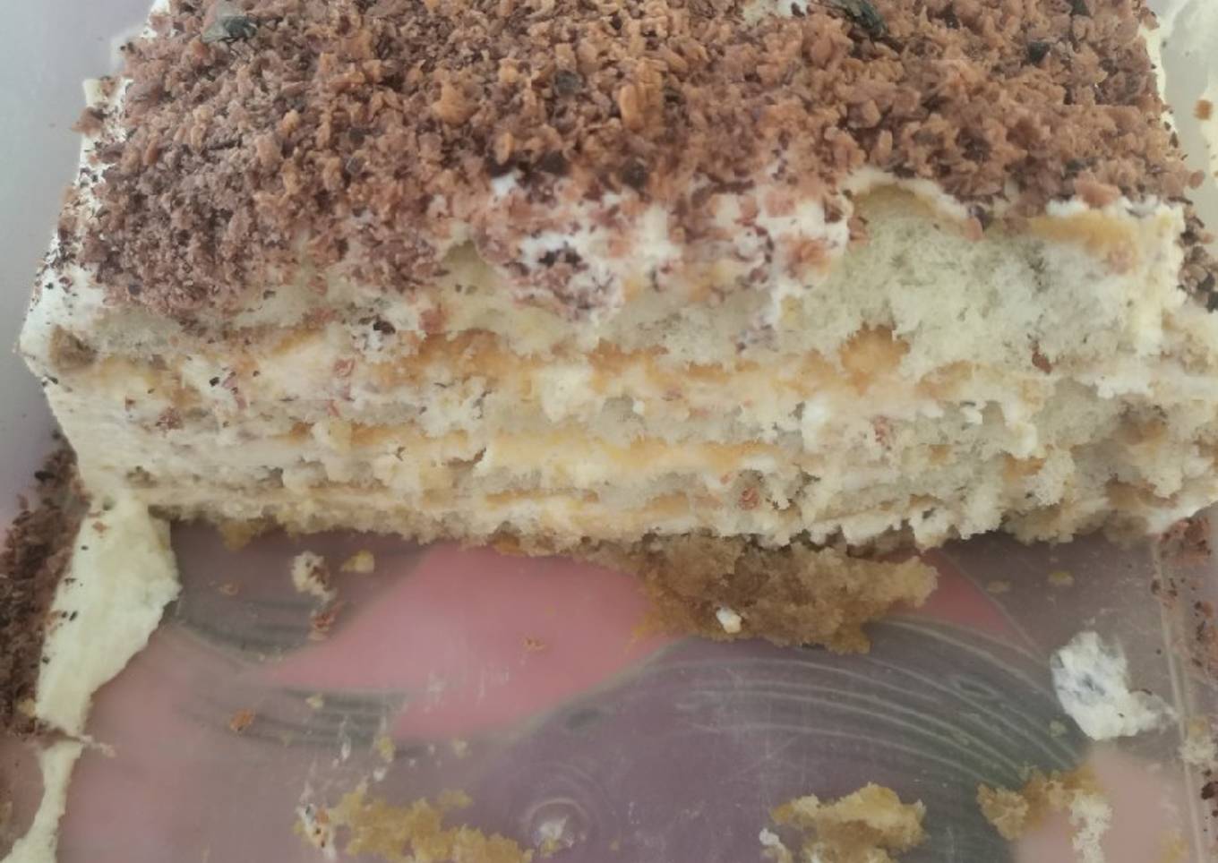 - La siguiente capa seria la mezcla de la nata y mascarpone, luego otra de bizcocho y otra de la crema, así hasta que calculemos que nos queda crema suficiente para cubrir la última capa y tapar bien todos los bizcochos incluidos los laterales.