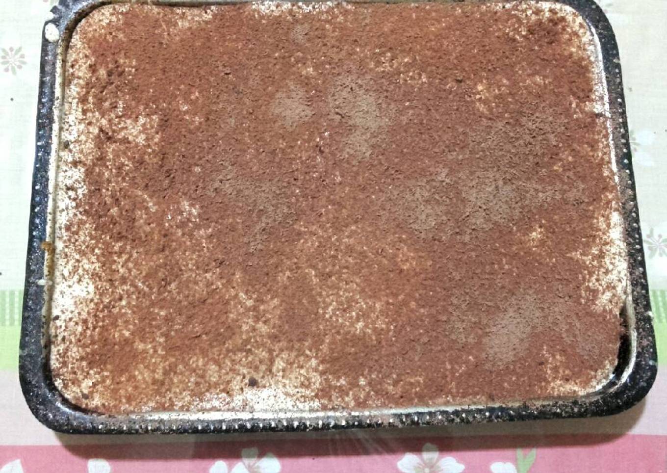- Repetir nuevamente el paso anterior y colocar lo restante de la crema preparada, esparcir con espátula para que queden todos los espacios cubiertos, por último agregarle chocolate rallado y cacao tamizado