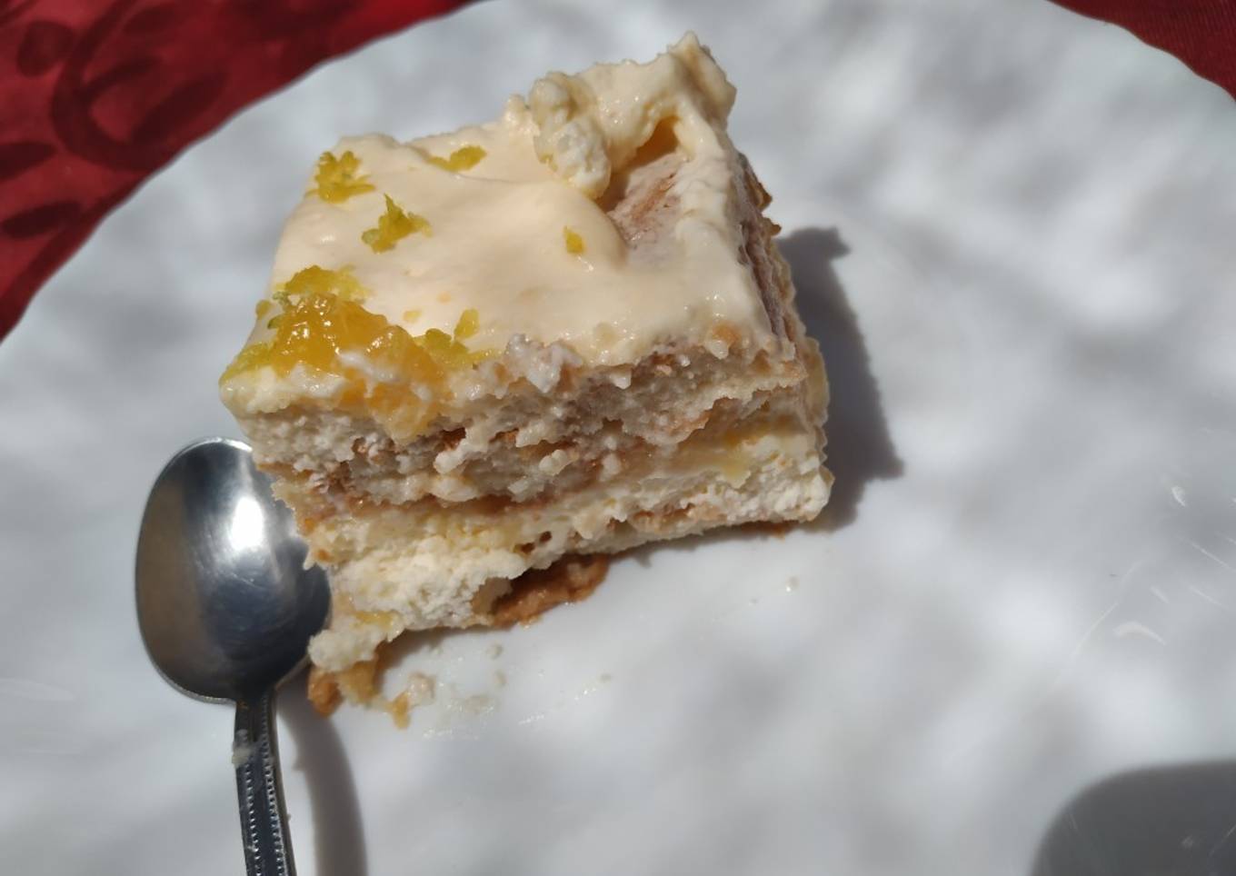 - Después de la capa de crema mascarpone+nata/clara montada, ponemos una capa de crema de limón