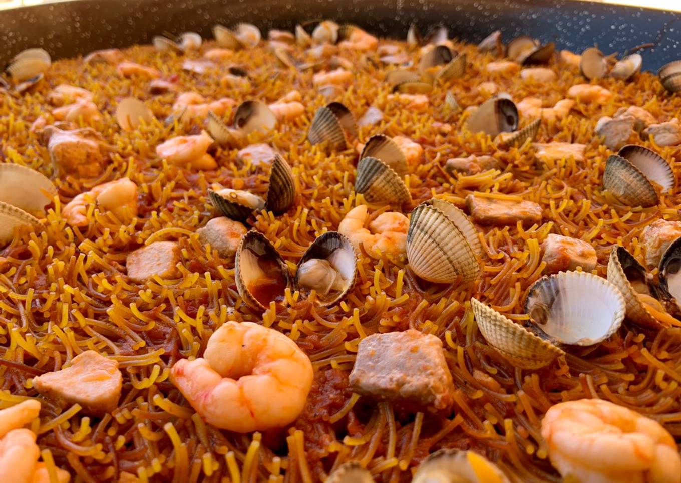 - A continuación, en la misma paella donde vamos a hacer la fideuá se freirán los fideos durante un par de minutos, intentando que no queden demasiado tostados. Reservarlos también.