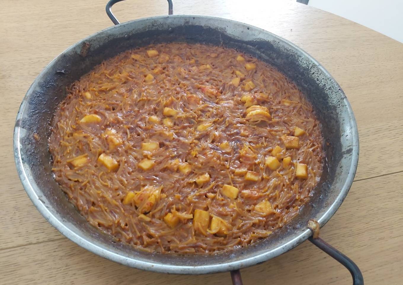 - Ya tenemos la fideuá lista... el último toque es opcional... ali-oli o en mi caso me gusta más... Ajonesa! Más suave y no en gran cantidad.