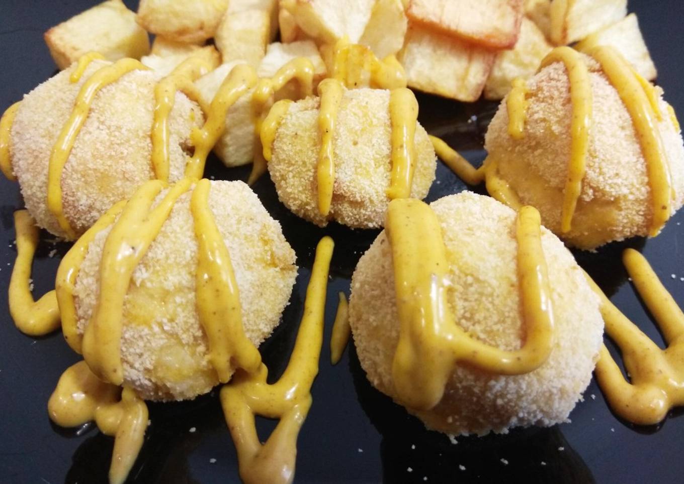 - Servimos las bolas con la salsa que más os guste. En la foto van acompañadas de salsa de curry y mango 😋