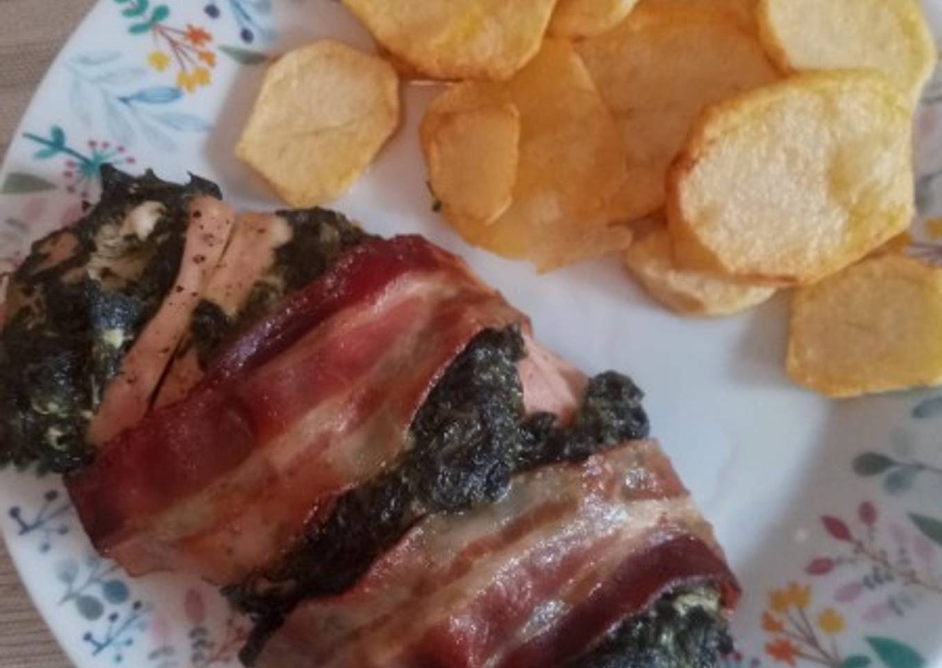 ~ Pechuga al horno rellena de espinacas con nata ~