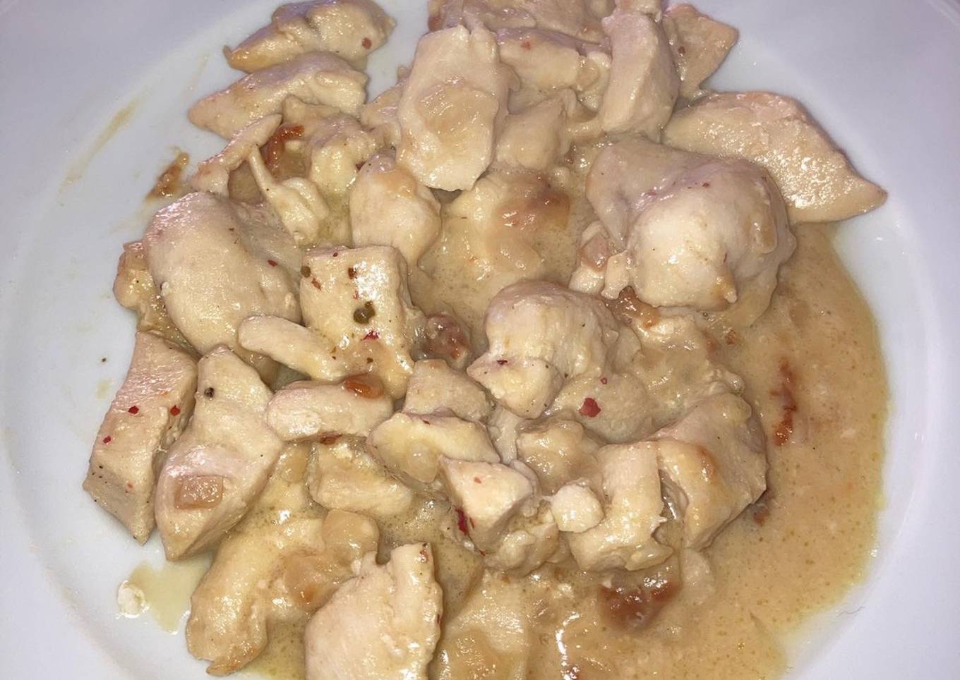 - Primero hacemos la pechuga previamente cortada a trozos y retiramos en un plato