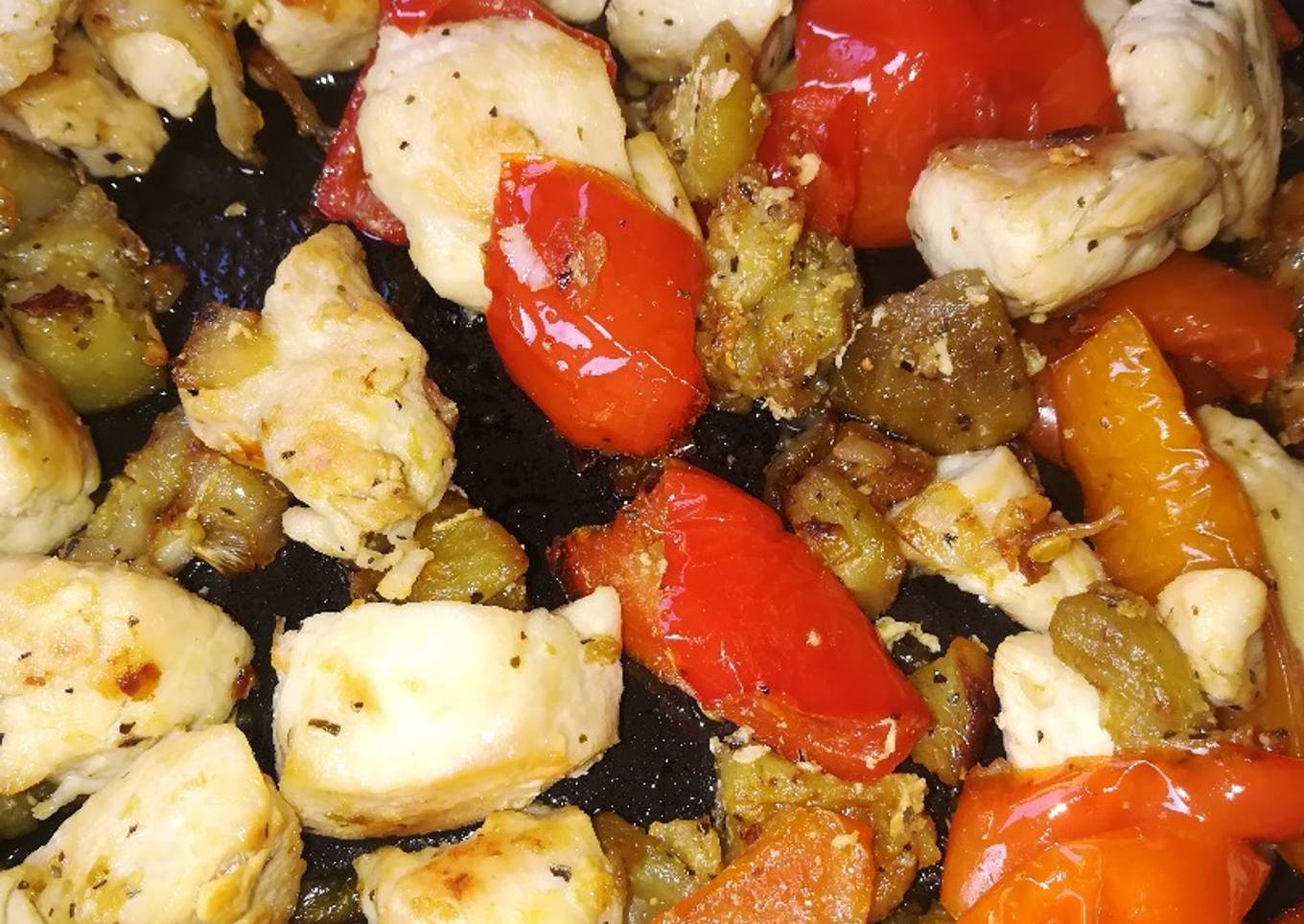 - Cuando esté en bien pochadas las verduras añadir las pechugas la cucharadita de ajo en polvo y albahaca al gusto y mezclamos hasta integrar todos los alimentos y dejamos unos minutitos más