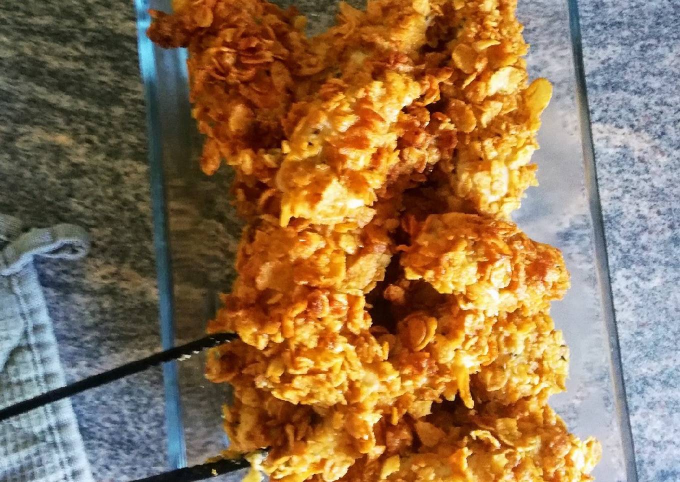 - Cogemos por un lado un bol para batir los huevos, y por otro lado otro bol para los corn flakes, estos, los trituramos con las manos para hacerlos más pequeños, que tampoco llegue a ser polvo.