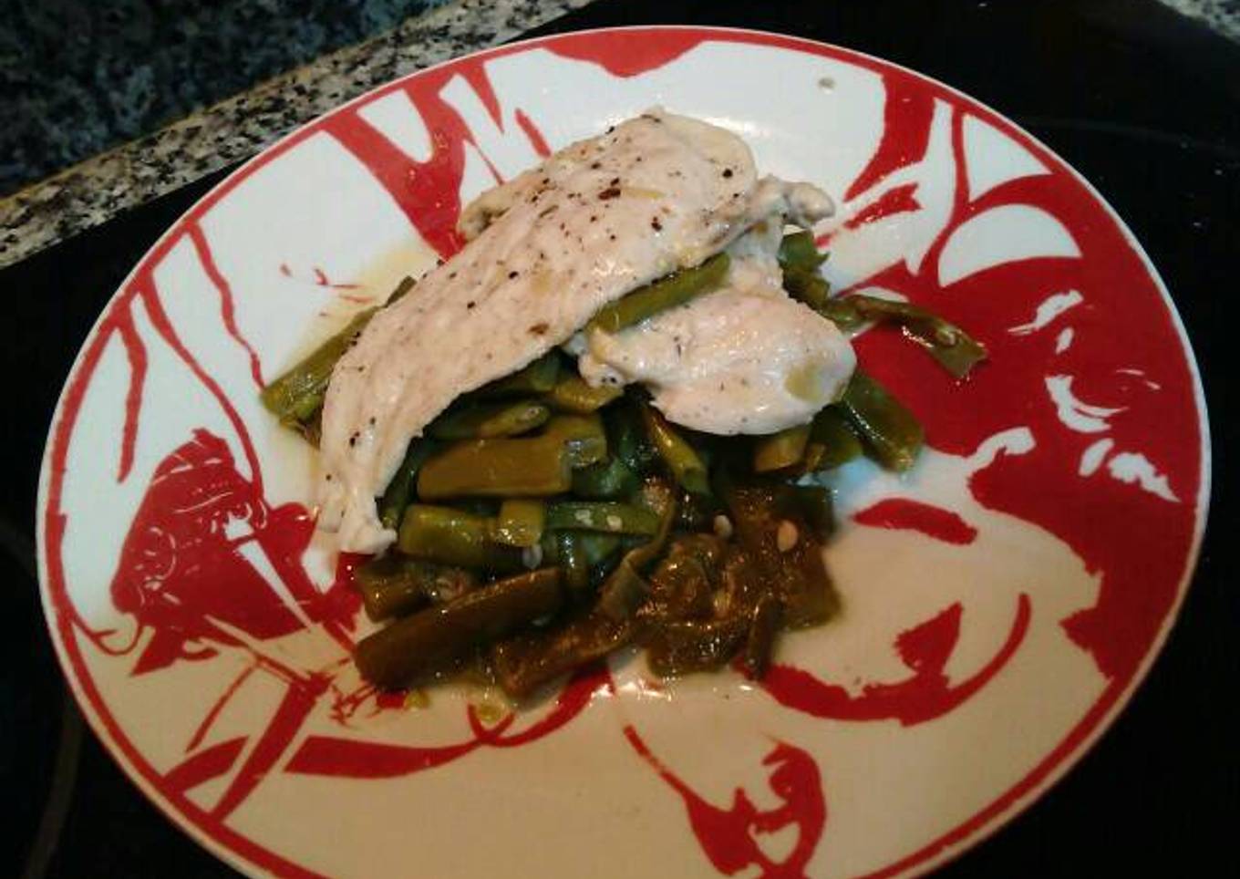 Judías beibis, al vapor con filetes de pechuga a la plancha