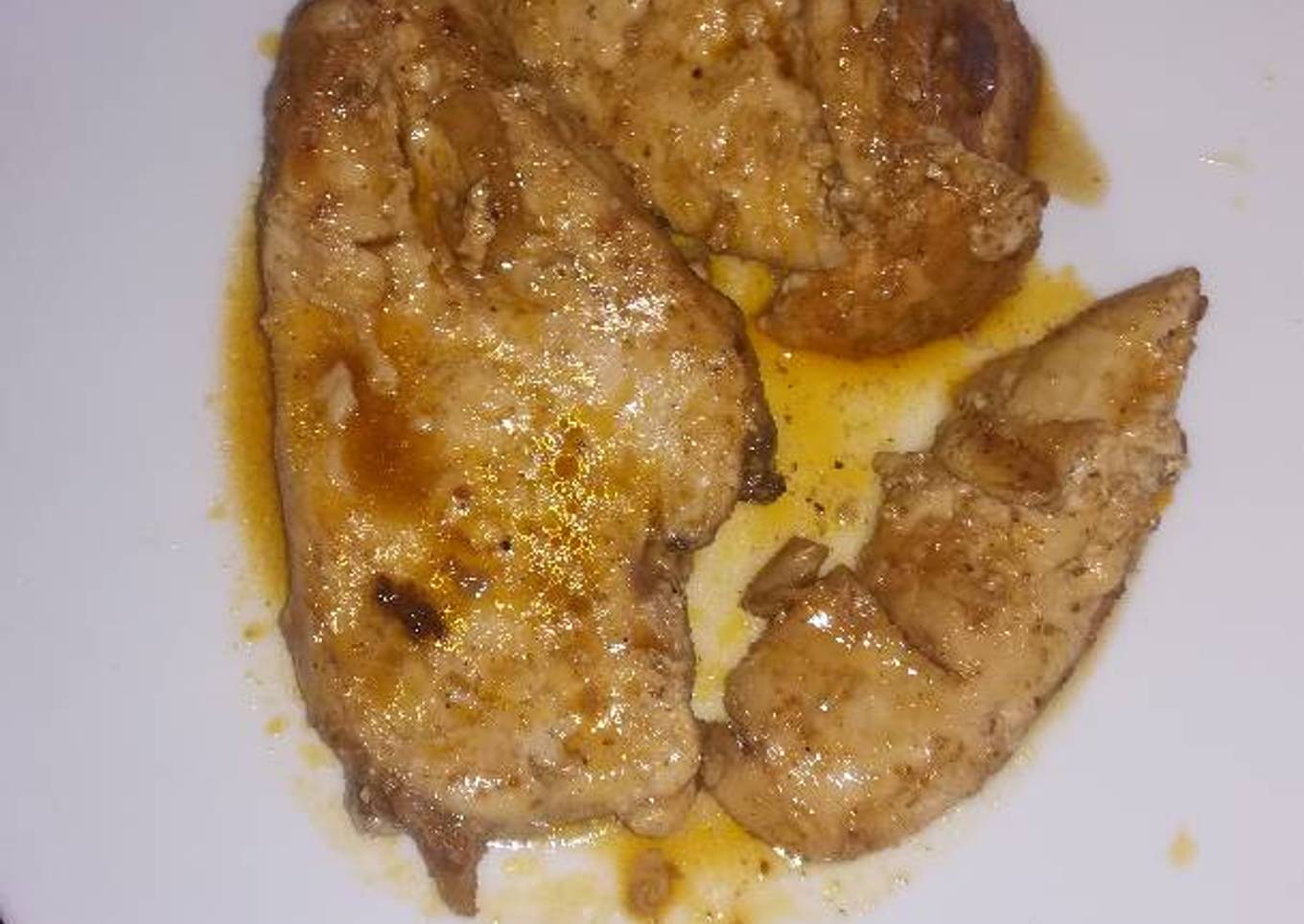 - En una sartén con aceite ya caliente echamos las pechugas y las dejamos que se hagan a fuego medio, al final sale una salsita muy rica.