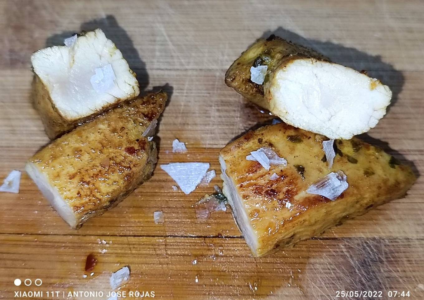 - Trocear la pechuga de pollo a tiras y cubrimos con la marinada, frigorífico mínimo 12h