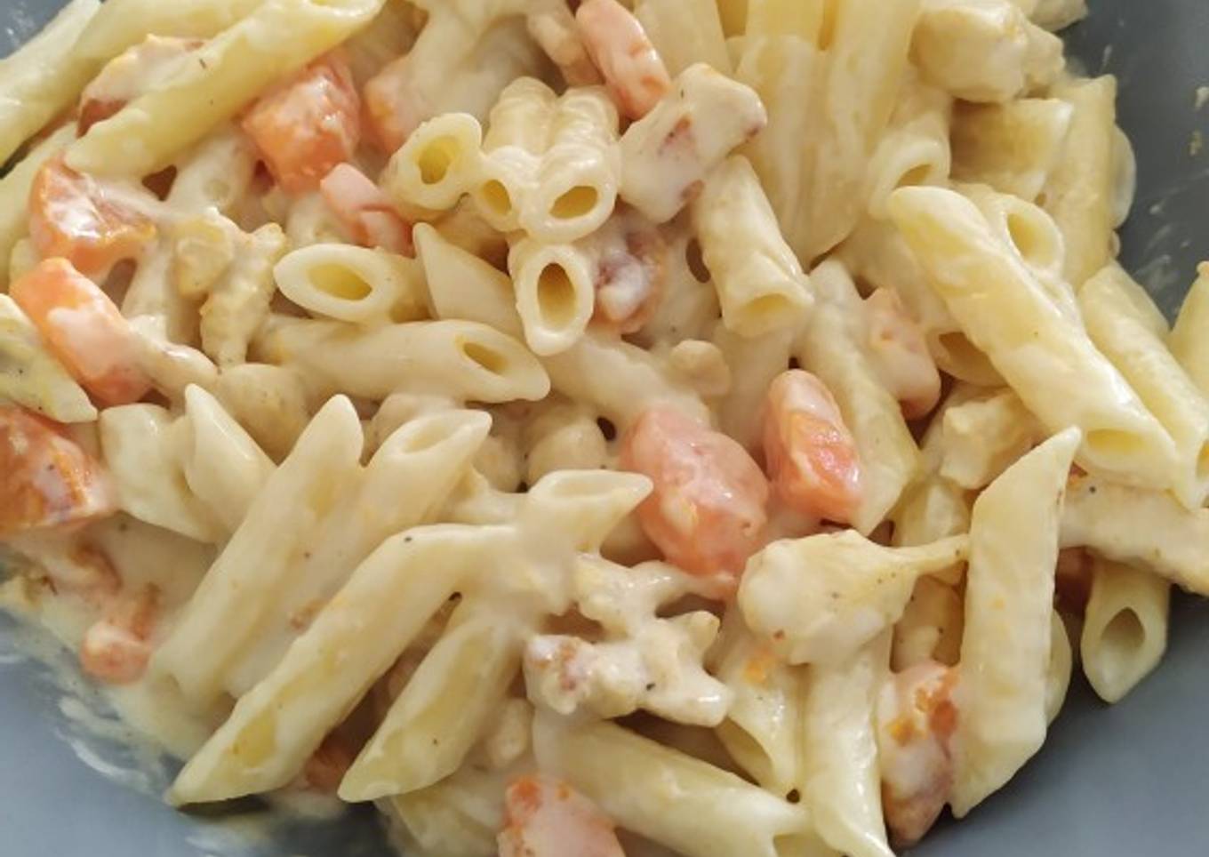 Macarrones con nata y pollo hechos con robot Moulinex 12en1