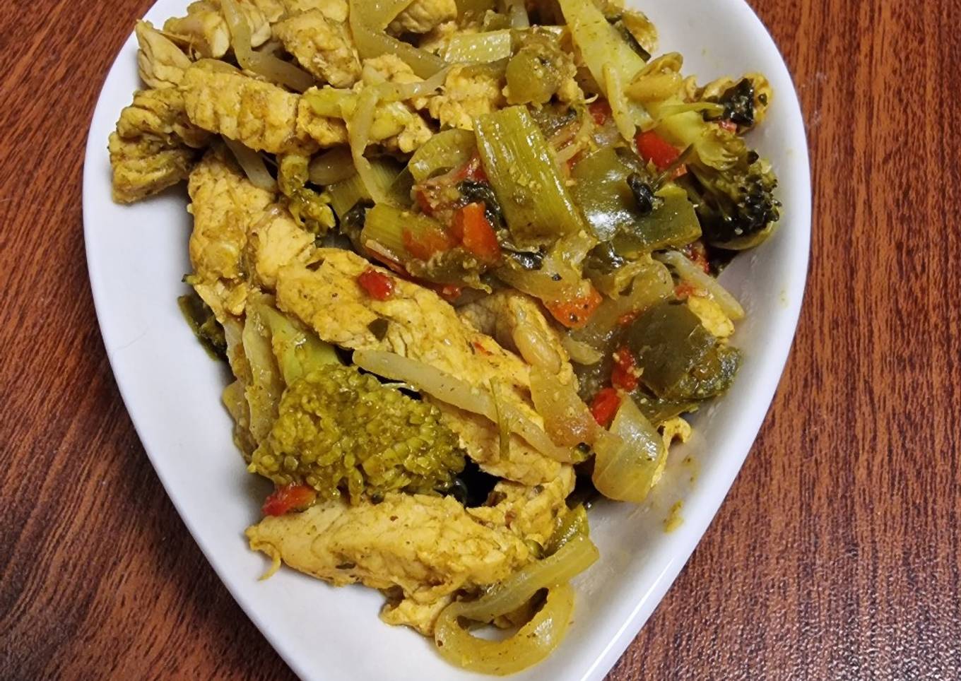 Steps to make to make Wok de verduras con pollo al curry (para enfermos renales)